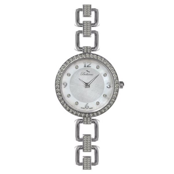 Diese Uhr besticht durch ihr Armband aus rechteckigen Gliedern sowie durch eine Lünette, die sorgfältig mit funkelnden Steinen besetzt ist. Das zart wirkende Design wird durch ein perlmuttfarbenes Zifferblatt mit glänzenden Indexen und elegant platzierten Zahlen hervorgehoben. Das Zusammenspiel dieser Elemente verleiht der Uhr einen femininen, schicken und zeitgemäßen Look, der jedes Outfit veredelt.