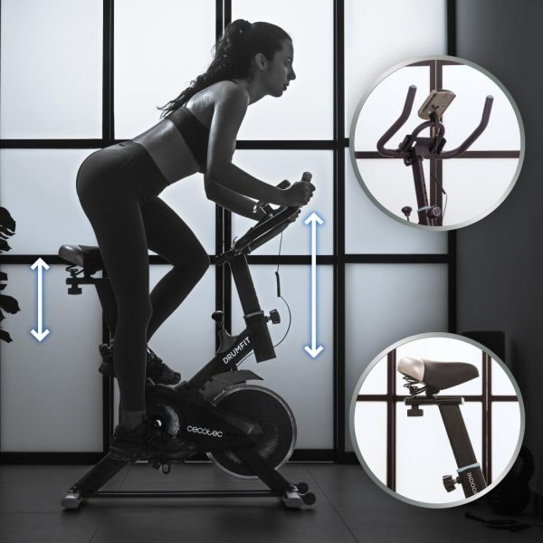 Mit einem Schwungrad von 6 kg bietet das DrumFit Indoor ein flüssiges und natürliches Tretgefühl, das die Bedingungen eines Fitnessstudios realistisch nachahmt. Der vertikal und horizontal verstellbare Sattel passt sich jeder Körpergröße an und sorgt für optimalen Komfort – auch bei längeren Trainingseinheiten.
