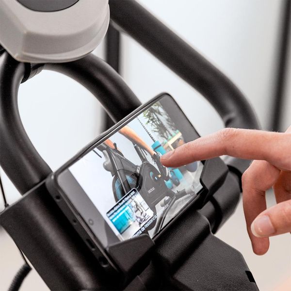 Das Fahrrad verfügt über eine Halterung für elektronische Geräte, perfekt geeignet, um während des Trainings Videos zu schauen oder einem Online-Programm zu folgen. So wird jede Einheit angenehmer und macht Lust, länger durchzuhalten.