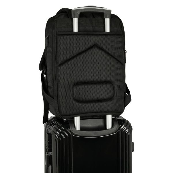 Für den täglichen Gebrauch konzipiert, ist der Rucksack mit ergonomischen, gepolsterten Schultergurten versehen, die mit atmungsaktivem Mesh überzogen sind. Auch die Rückseite ist gepolstert und mit einem Anti-Schweiß-Mesh-System ausgestattet, das maximalen Tragekomfort bietet. Ein Gepäckgurt ermöglicht es zudem, den Rucksack sicher auf einem Koffer zu befestigen – perfekt für Geschäftsreisen.