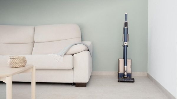 Kabelloser Stabstaubsauger mit automatischer Absaugstation