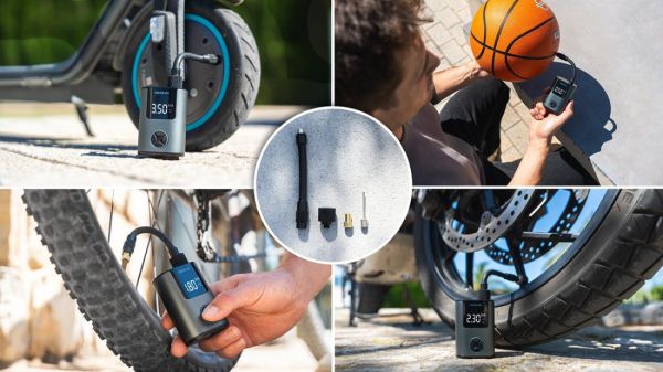 Der Mini Air Max passt sich dank seiner 4 verschiedenen Düsen flexibel an unterschiedliche Anforderungen an. Er eignet sich ideal zum Aufpumpen von Fahrrädern, Motorrädern, E-Scootern, Autos und Bällen und ist damit eine vielseitige Lösung für zahlreiche Anwendungen.