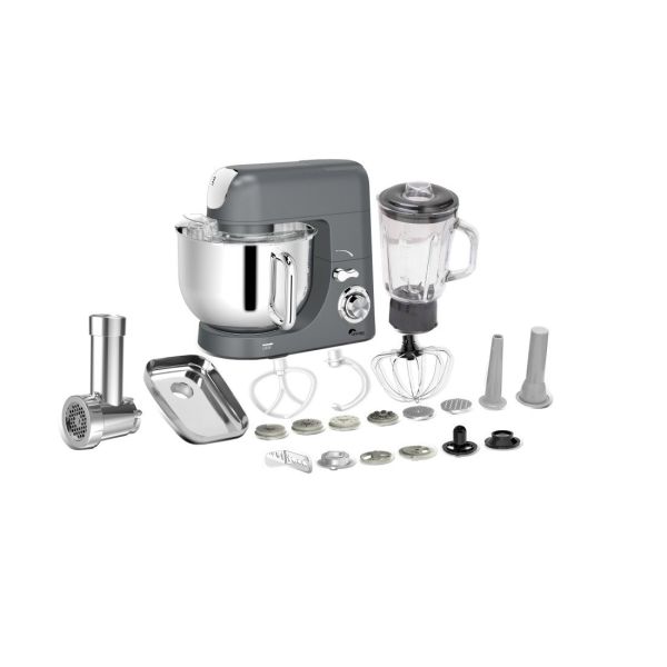 Ausgestattet mit einem Mixer (1,5 L) und einem Fleischwolf, passt sich die Küchenmaschine allen Bedürfnissen an. Der Fleischwolf verfügt über drei Edelstahlscheiben, einen Stößel und eine Zuführschale, um verschiedene Texturen und Zubereitungen zu ermöglichen. Ob Smoothies, Pürees, Gebäck oder herzhafte Gerichte – diese Küchenmaschine ist ein komplettes Küchenzentrum, das mehrere Geräte ersetzt.