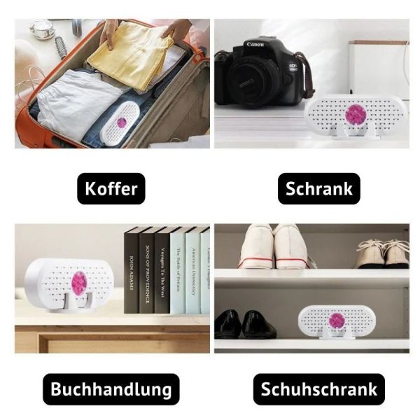Feuchtigkeit setzt sich unbemerkt in Schränken, Schuhregalen oder kleinen Räumen fest … und mit ihr kommen unangenehme Gerüche und das Gefühl von klammer Wäsche.