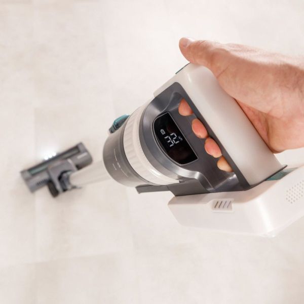 Der Staubsauger verfügt über ein großes, hintergrundbeleuchtetes LCD-Display sowie eine 4-stufige Ladeanzeige. Der 600-ml-Staubbehälter ist abnehmbar und waschbar und lässt sich dank des TOUCH & CLEAN-Systems hygienisch entleeren, ohne direkten Kontakt mit dem Schmutz. Mit dem ONE-TOUCH-System lassen sich Zubehörteile schnell und einfach mit einem Klick befestigen oder abnehmen.