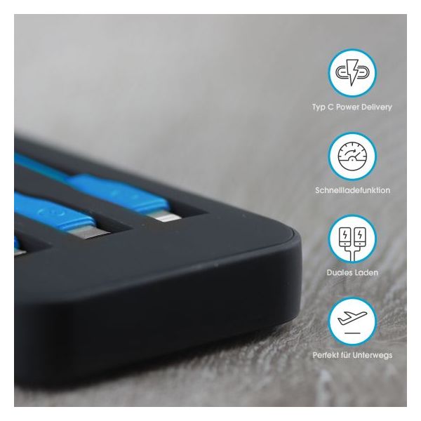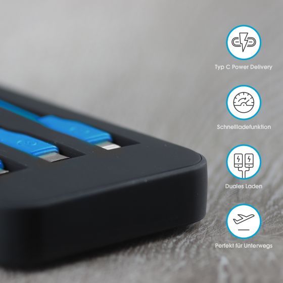 Équipée en outre de la technologie Fast Charge, vous pouvez profiter de la fonction de charge ultra-rapide de la powerbank grâce à cette technologie révolutionnaire. Le format de poche pratique rend ce powerbank ultra portable.