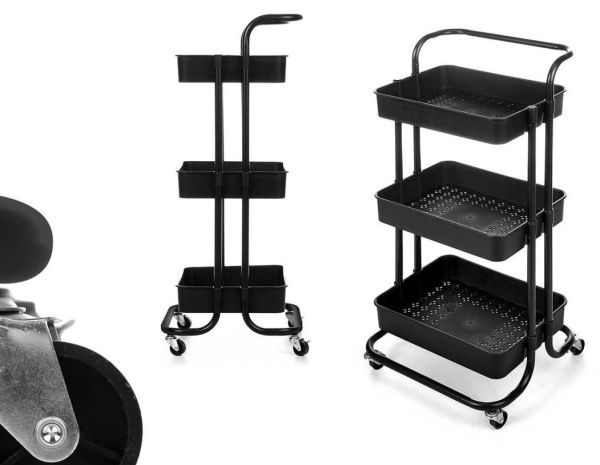 Ce chariot de cuisine à 3 compartiments allie design élégant et fonctionnalité optimale. Sa structure noire sobre et moderne s'intègre parfaitement dans tous les intérieurs, qu'il s'agisse d'une cuisine, d'un bureau ou d'une salle de bain. Conçu pour s'adapter à différents usages, il permet de garder vos accessoires, ustensiles ou produits toujours à portée de main, tout en apportant une touche esthétique à votre espace.
