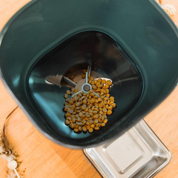 Équipé d'une gamelle amovible en acier inoxydable, le distributeur garantit une hygiène parfaite au quotidien. Ce matériau résistant évite la prolifération des bactéries et se nettoie très facilement, y compris au lave-vaisselle. La structure anti-obstruction empêche les croquettes de se coincer dans le conduit, assurant une distribution fluide et sans interruption.