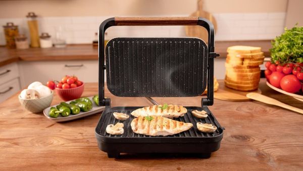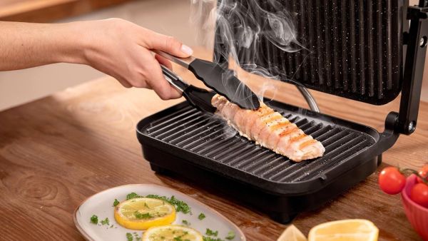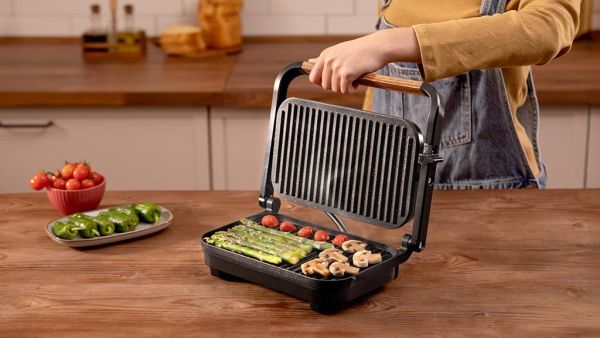 La plaque supérieure flottante et réglable en hauteur s'adapte automatiquement à l'épaisseur des aliments. Que vous prépariez un filet de poulet, des légumes grillés ou un sandwich généreux, le gril assure une pression uniforme et une cuisson homogène. Cette polyvalence vous permet d'élargir vos possibilités culinaires sans contrainte.