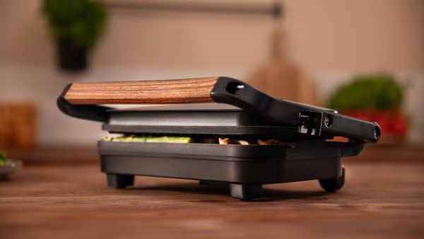 Apportez du caractère à votre plan de travail avec le Gril de Contact Rock'nGrill. Son design noir intemporel s'intègre parfaitement dans toutes les cuisines, des plus modernes aux plus classiques. Sa poignée en bois au toucher froid ne se contente pas d'offrir une manipulation sûre : elle ajoute également une touche chaleureuse et raffinée à l'ensemble. Ce gril allie ainsi esthétique et fonctionnalité pour transformer chaque préparation en véritable moment de plaisir culinaire.