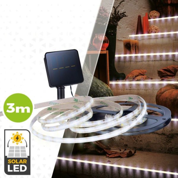 La Bande LED lumineuse Solaire 3 m offre une solution d'éclairage élégante et fonctionnelle pour sublimer votre jardin, terrasse ou escalier. Grâce à ses 90 LED émettant une lumière blanche claire ou multicouleur, elle apporte immédiatement une atmosphère lumineuse tout en renforçant la visibilité et la sécurité en extérieur. Son fonctionnement 100 % solaire vous garantit un éclairage économique, sans câbles ni consommations supplémentaires.