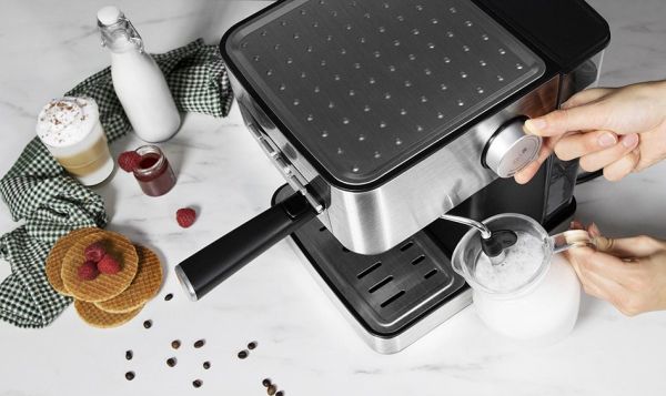 Équipée d'une buse vapeur orientable avec protection, la machine permet de faire mousser le lait pour préparer de délicieux cappuccinos, mais aussi de chauffer des liquides ou produire de l'eau chaude pour les infusions. Cette polyvalence permet de varier facilement les plaisirs : espresso intense, cappuccino crémeux ou thé chaud, tout devient possible avec un seul appareil.
