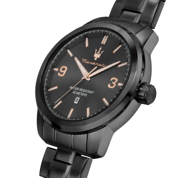 Dotée d'un mouvement quartz, la Maserati Successo assure une précision irréprochable au quotidien. Une fenêtre de date élégamment intégrée renforce son côté pratique. Avec une résistance à l'eau de 5 ATM (50 mètres), elle accompagne sans difficulté les activités de tous les jours tout en conservant son élégance.