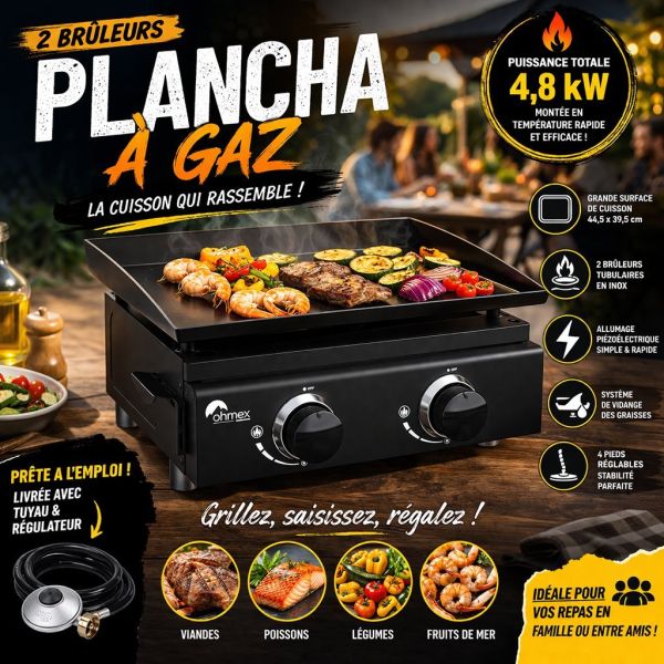 Plancha à gaz 2 brûleurs