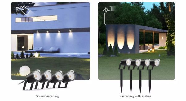 Polyvalents et ingénieusement conçus, ces spots peuvent être installés sur un mur ou plantés dans le sol grâce au système de fixation double fourni (piquets et supports muraux inclus). Cette flexibilité permet d'adapter facilement l'éclairage selon la configuration de votre jardin, sans outils complexes.