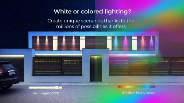 Les spots utilisent la technologie RGBWIC, combinant la richesse des couleurs RGBIC et la pureté d'une lumière blanche chaude de 3000K. Cette combinaison permet de créer des millions de scénarios lumineux : soirée détente, réception festive, ou simple mise en valeur de vos plantes et façades. Chaque spot peut afficher une teinte différente, pour un rendu à la fois harmonieux et spectaculaire.