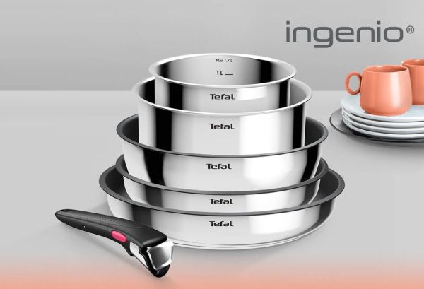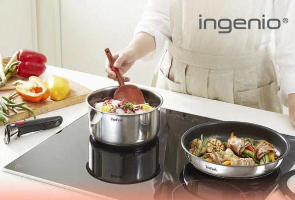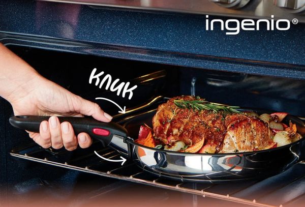La gamme Ingenio se distingue par sa poignée amovible brevetée, sécurisée et garantie 10 ans, qui permet de passer facilement de la plaque de cuisson au four, puis à la table ou au réfrigérateur. Les différents éléments s'empilent parfaitement, rendant le rangement plus compact et particulièrement adapté à toutes les cuisines, même les plus petites.