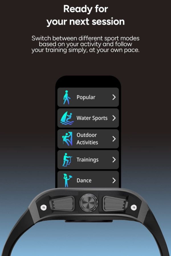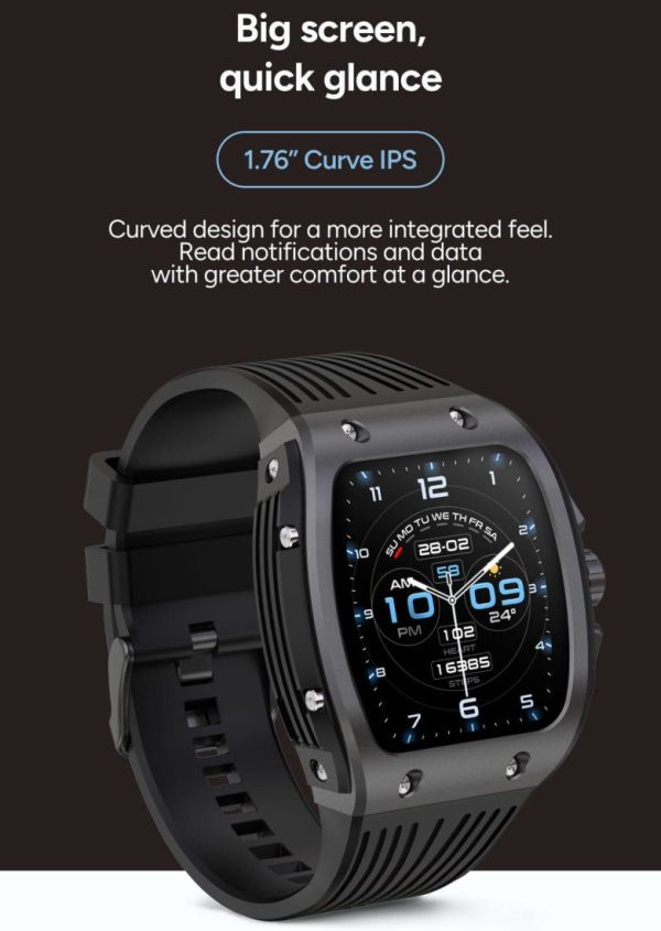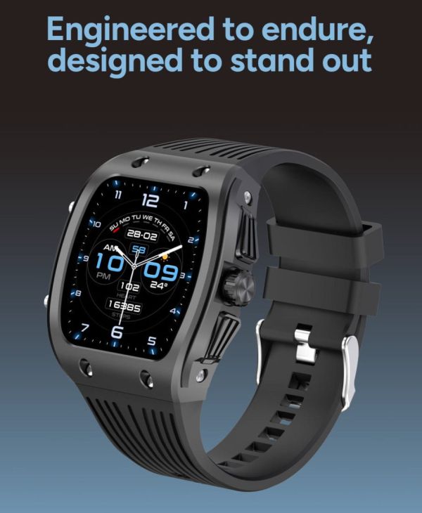 Avec son boîtier en alliage de zinc et son format imposant, la Hero affirme clairement sa personnalité. Son écran ovale incurvé attire immédiatement l'attention, tandis que ses boutons latéraux larges assurent une utilisation facile, même en mouvement. Le bracelet en silicone épais garantit un maintien sûr et confortable, idéal pour les activités sportives comme pour une utilisation prolongée. Chaque élément de son design a été pensé pour combiner résistance, ergonomie et style moderne.