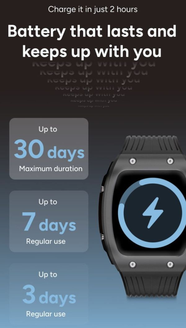 La Hero se distingue par une batterie de 380 mAh capable de suivre votre rythme sans contrainte. Elle offre jusqu'à 30 jours en veille, 7 jours en utilisation normale et 3 jours en usage intensif. Cette endurance permet de profiter pleinement de ses fonctionnalités sans dépendre constamment d'un chargeur. De plus, sa certification IP68 la protège contre l'eau et la sueur, la rendant parfaitement adaptée aux entraînements intensifs et aux activités en extérieur.