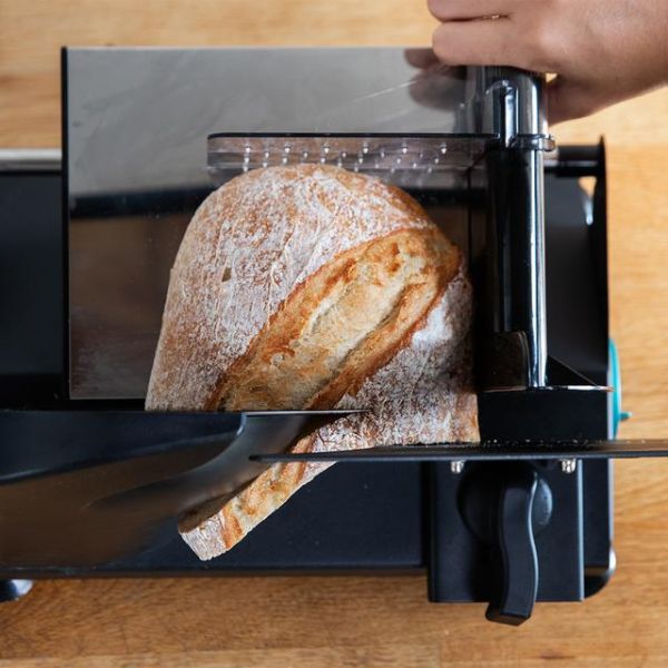 Son corps en métal noir apporte à la trancheuse Rock'nCut un design innovant et minimaliste, parfaitement intégré dans une cuisine moderne. Les éléments en acier inoxydable, notamment le couvercle du curseur et la lame, garantissent une excellente résistance à l'usure tout en préservant l'affûtage de la lame dans le temps.