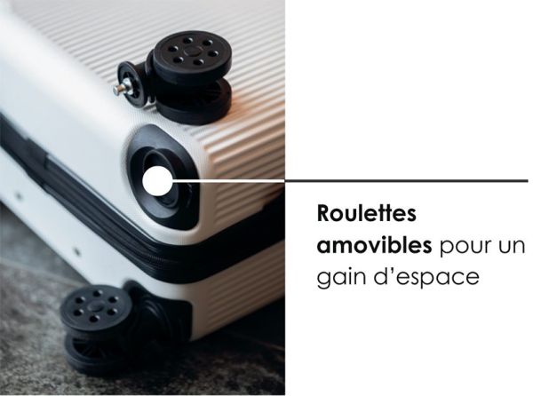 Avec ses roulettes amovibles, cette valise vous offre un gain d'espace optimal. Vous pouvez facilement les détacher pour maximiser la capacité de rangement, idéal pour les escapades de dernière minute ou les souvenirs de voyage inattendus.